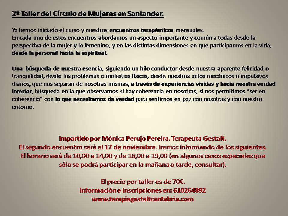 Damos comienzo al Círculo de Mujeres en Santander, este sábado 27 de octubre.